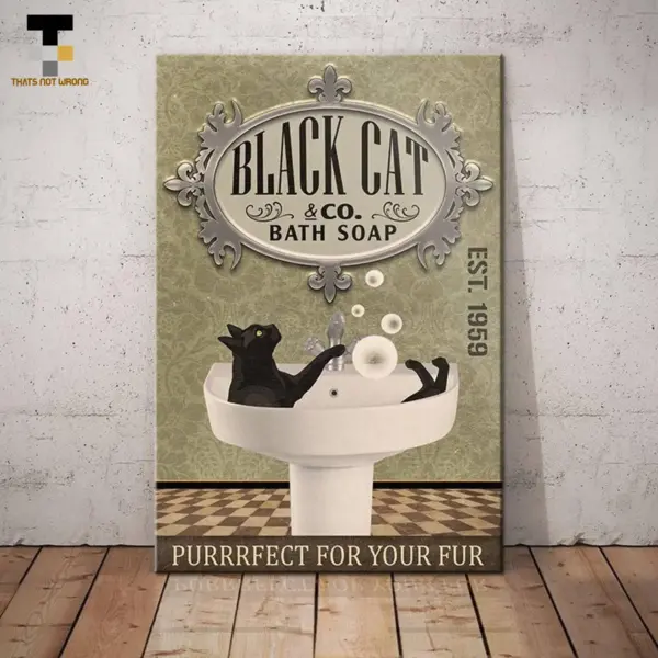 Black Cat Bath Soap Comapny Canvas Poster Bathroom Living Room Dog Lover Decoration