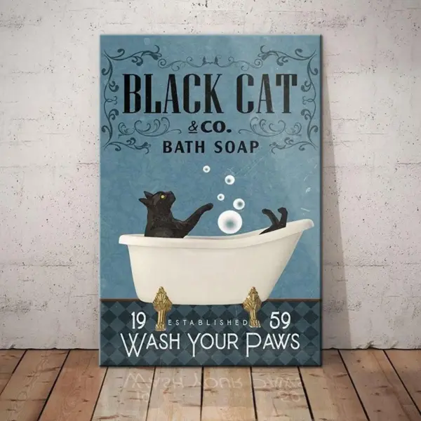 Black Cat Bath Soap Company Canvas Poster Bathroom Living Room Dog Lover Decoration