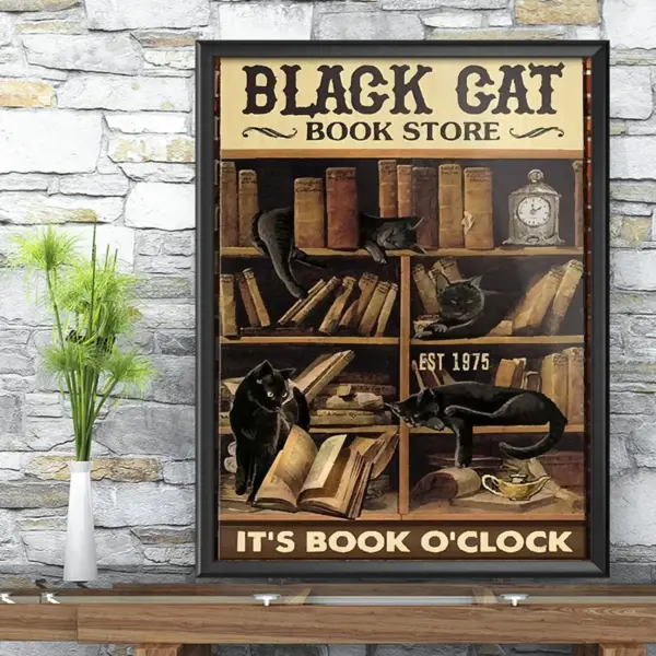Black Cat Book Store It S Book O Clck Black Cat Poster Black Cat Lover Poster Black Cat Wall Decor Cat Lover Gift