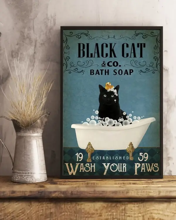 Black Cat Co Bath Soap Wash Your Fins Vertical Poster Black Cat Wall Art Print For Wall Decor Best Gift Ever For Cat Lover