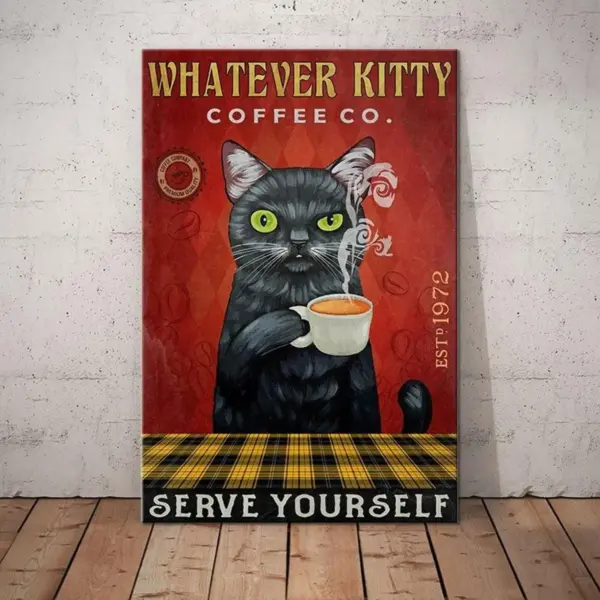 Black Cat Coffee Company Canvas Poster Bathroom Living Room Dog Lover Decoration 0608