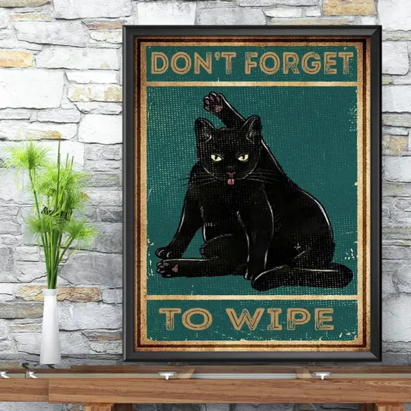 Black Cat Don T Forget To Wipe Poster Black Cat Poster Cat Vintage Poster Cat Lover Gift