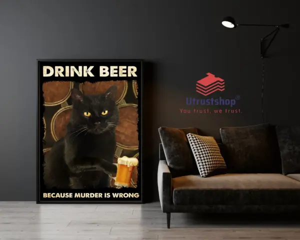 Black Cat Drink Beer Because Murder Is Wrong Poster