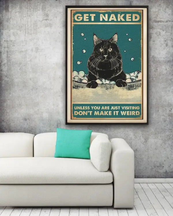 Black Cat Get Naked Poster Dont Make It Weird Funny Gift For Cat Lover Poster Retro Style Funny Kitty Bathroom Quote Decor Bathroom