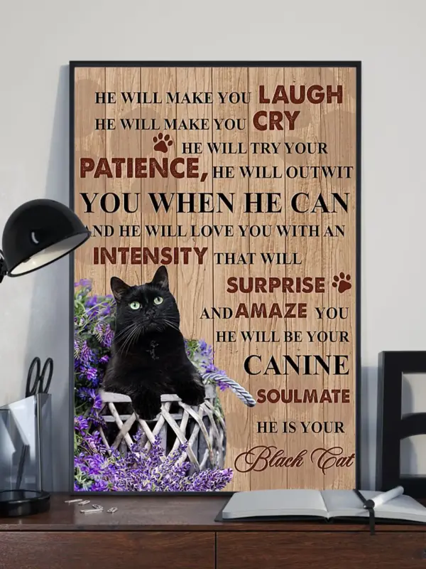 Black Cat He Will Make You Laugh Poster He Will Try Your Patience He Will Outwit You When He Can Poster Black Cat Lover Cat Poster