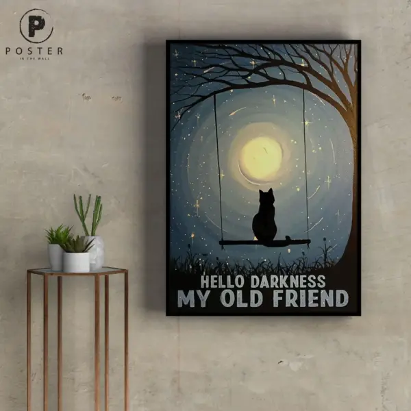 Black Cat Hello Darkness My Old Friend Poster Vintage Style Poster Black Cat Poster Retro Poster Vintage Poster Moon Poster Cat Lover