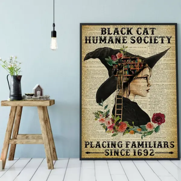 Black Cat Humane Society Placing Familiars Since 1692 Poster Witches Art Print Black Cat Wall Art Books Lover Gift Best Gift Ever