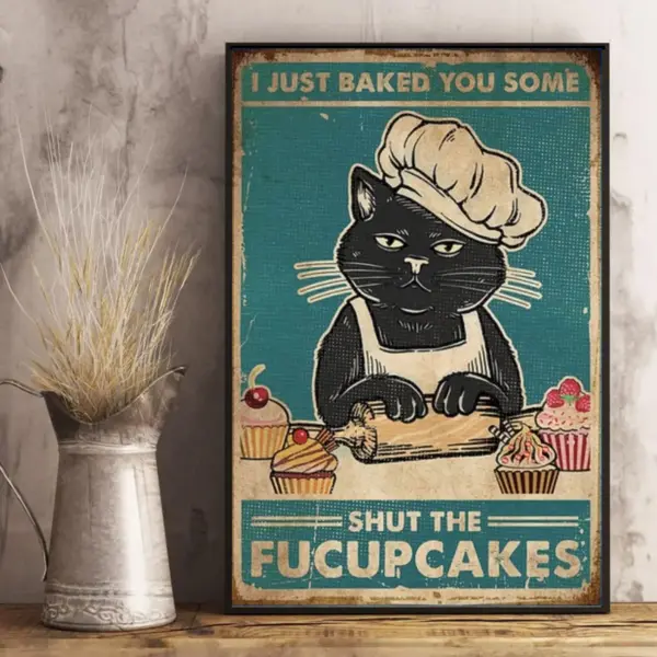 Black Cat I Just Baked You Some Shut The Fucup Cakes Poster Vintage Kitty Poster Retro Style Funny Kitty Poster No Frame
