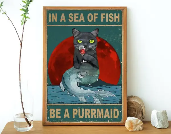Black Cat In A Sea Of Fish Be A Purrmaid Cat Lovers Poster Mermaid Poster Mermaid Lover Home Decor No Framed
