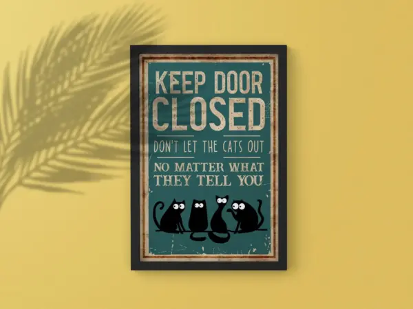 Black Cat Keep Door Closed Bathroom Poster Animal Lovers Gifts Funny Bathroom Art Print Wall Art Wall Decoration Christmas Gift