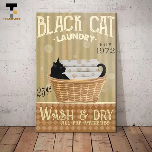 Black Cat Laundry Company Canvas Poster Bathroom Living Room Dog Lover Decoration