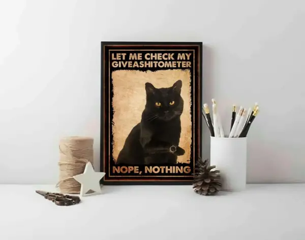 Black Cat Let Me Check My Giveashitometer Poster Black Cat Giveashitometer Poster Wall Decoration Retro Cat Art Wall Art Black Cat Poster