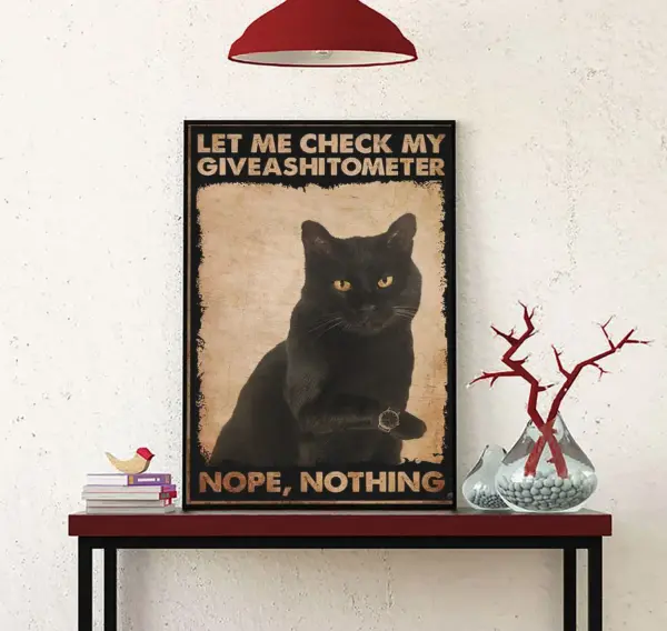Black Cat Let Me Check My Giveashitometer Poster Black Cat Poster Cat Art Print Funny Cat Wall Art Black Cat Lover Gift Vintage Poster