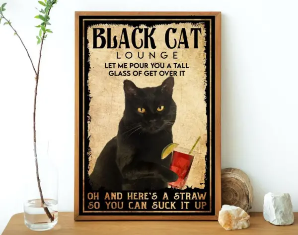 Black Cat Lounge Get Over It Poster Black Cat Lover Cat Art Print Cat Lover Gift Drinking Poster Lounge Decor Vertical Poster No Framed