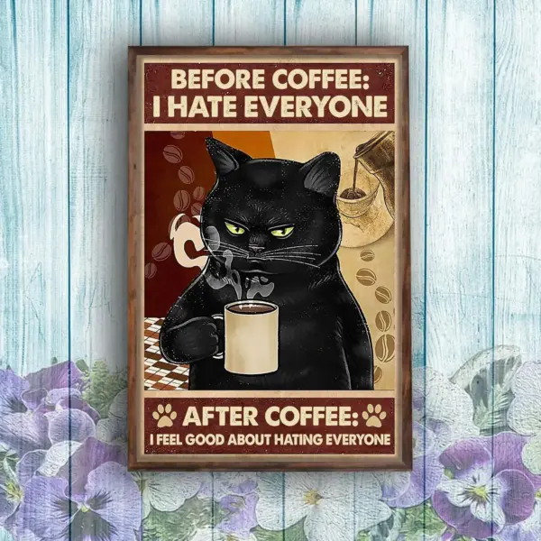 Black Cat Lovers Before I Hate Everyone After Coffee I Feel Good About Hating Everyone Poster Home Living Decor