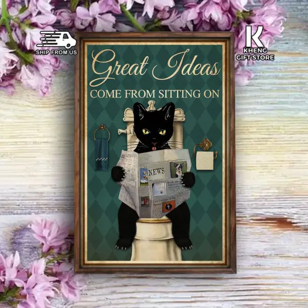 Black Cat Lovers Great Ideas Come On Funny Poster Wall Art Print Home Living Restroom Toilet Decor Poster