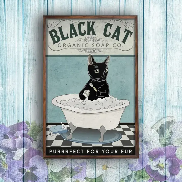 Black Cat Lovers Organic Purrrfect For Your Fur Funny Poster Wall Art Print Living Home Bathroom Decor Poster