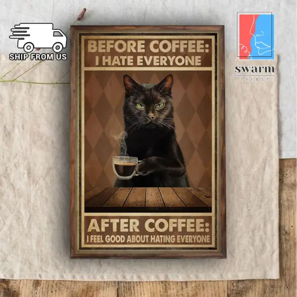 Black Cat Lovers Poster Before Coffee I Hate Everyone After Coffee I Feel Good About Hating Everyone Living Decor Poster