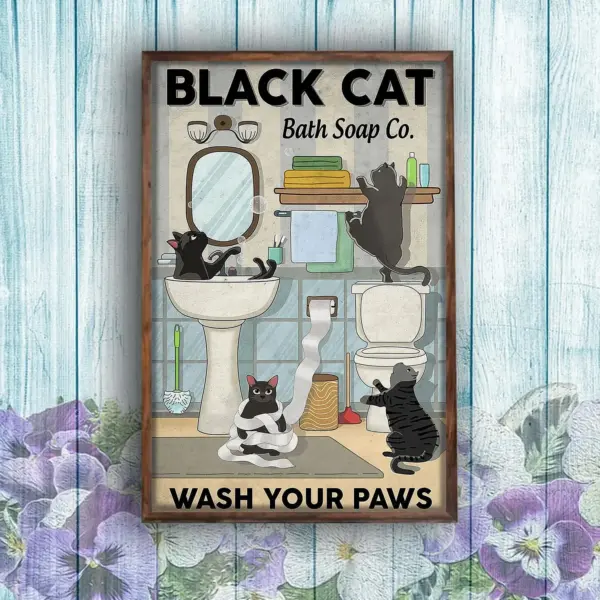 Black Cat Lovers Wash Your Paws Poster Wall Art Print Sink Home Living Bathroom Restroom Toilet Decor Poster