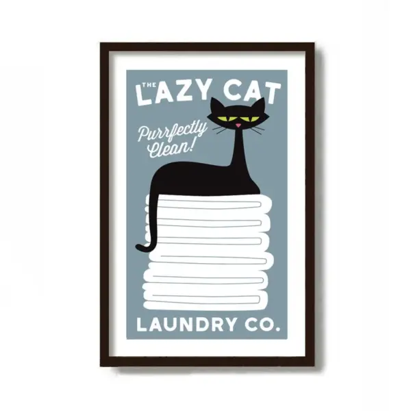 Black Cat Mid Century Modern Art Laundry Room Decor Cat Wall Art Black Cat Art Print Cat Lover Gift Idea Laundry Sign Bathroom Towels