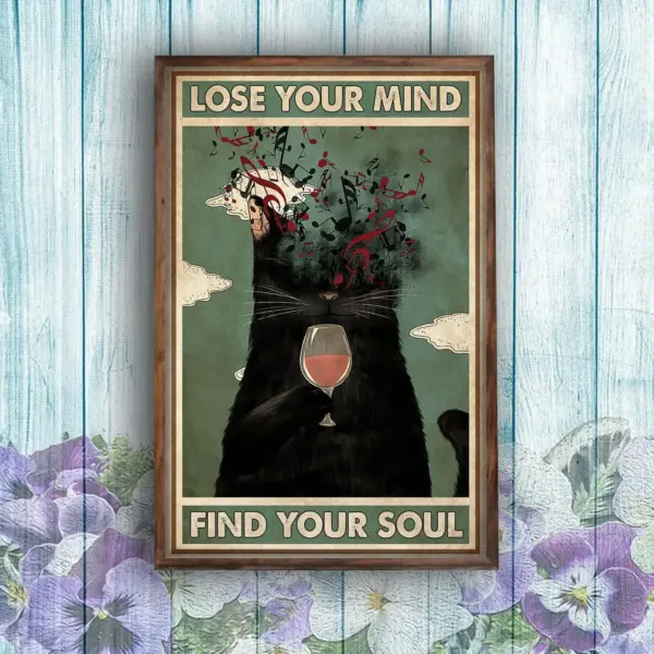 Black Cat Music And Wine Lovers Lose Your Mind Find Your Soul Poster Lovers Home Living Decor Poster