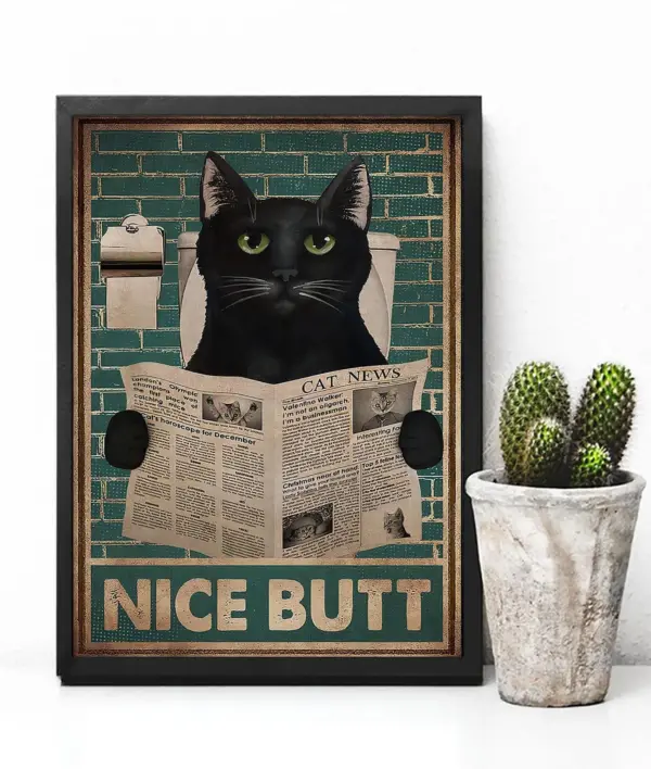 Black Cat Nice Butt Poster Cat Lover Gift Black Cat Wall Art Cat Canvas Print Funny Black Cat Funny Bathroom Decor Cat Bathroom Print