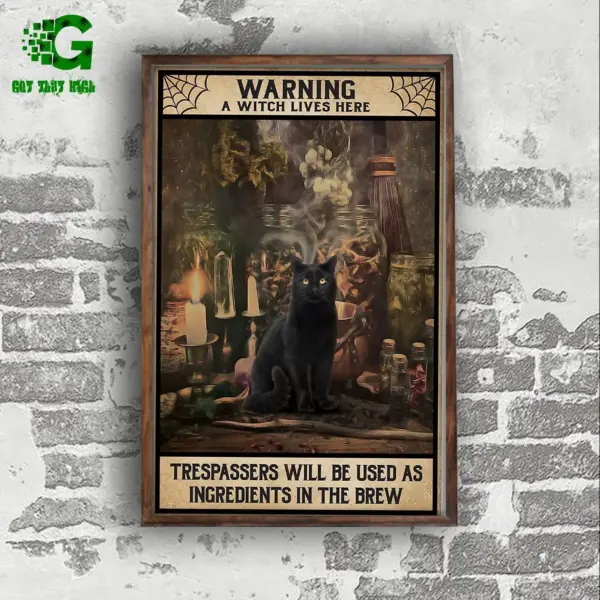 Black Cat Poster Cat Lover A Warning A Witch Lives Here Wall Art Home Decor Poster Print