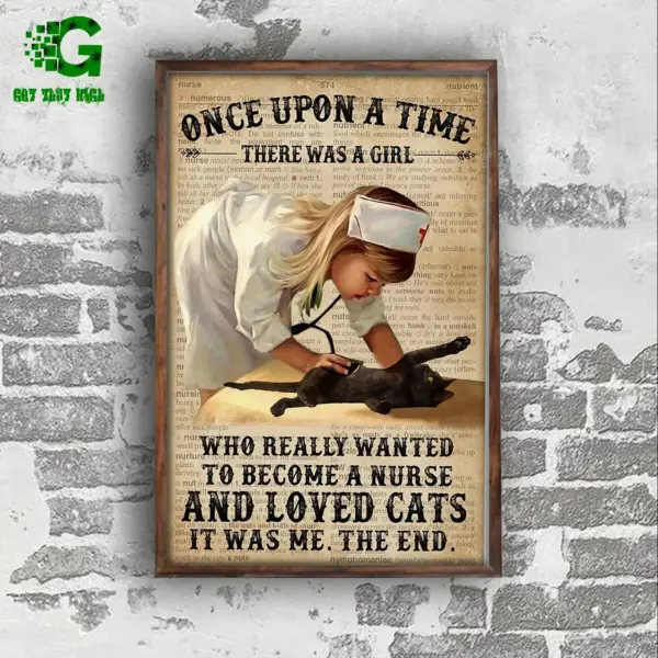 Black Cat Poster Cat Lover Baby Girl Nurse And Cat Once Upon A Time Wall Art Home Decor Poster Print