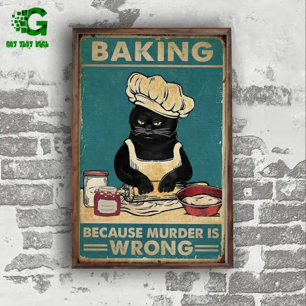 Black Cat Poster Cat Lover Black Cat Baking Because Murder Is Wrong Wall Art Home Decor Poster Print