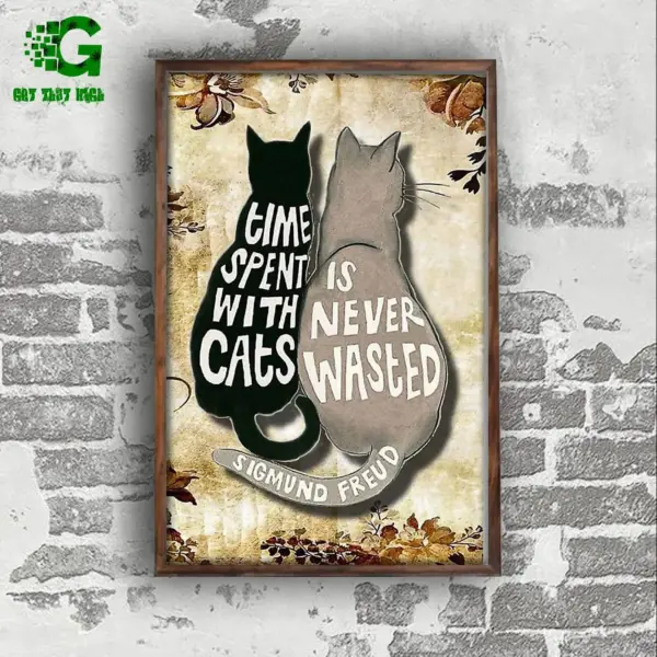 Black Cat Poster Cat Lover Black Cat Couple Time Spent With Cat Is Never Wall Art Home Decor Poster Print