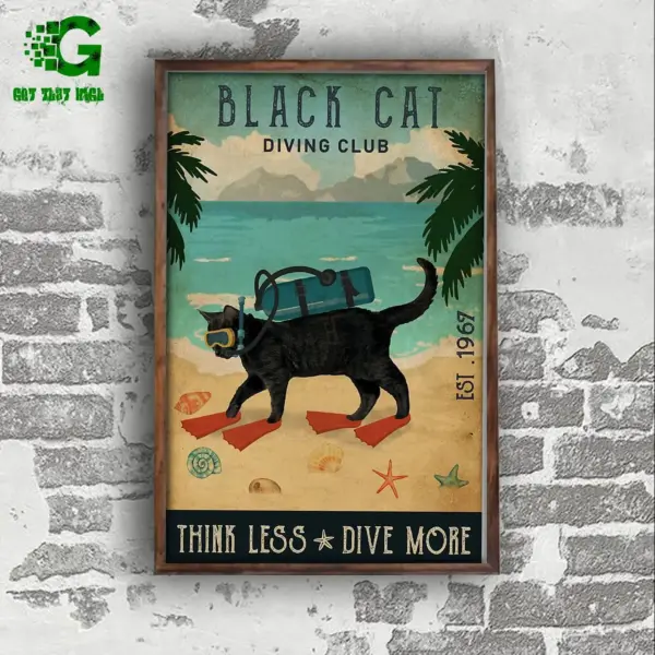 Black Cat Poster Cat Lover Black Cat Diving Club Think Less Dive More Wall Art Home Decor Poster Print