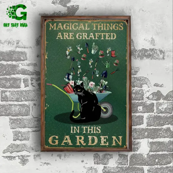 Black Cat Poster Cat Lover Black Cat Herb Retro Green Magical Things Garden Wall Art Home Decor Poster Print