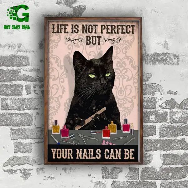 Black Cat Poster Cat Lover Black Cat Nail Technician Life Is Not Perfect Wall Art Home Decor Poster Print