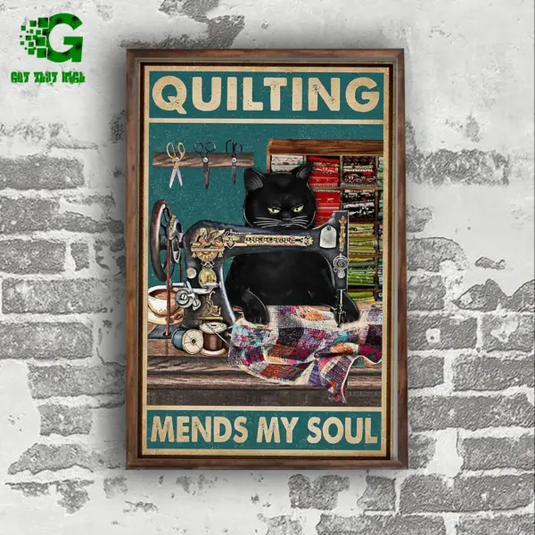 Black Cat Poster Cat Lover Black Cat Quilting Mends My Soul Wall Art Home Decor Poster Print