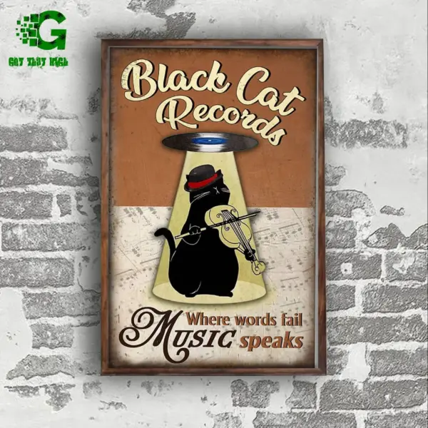 Black Cat Poster Cat Lover Black Cat Records Where Words Fail Wall Art Home Decor Poster Print