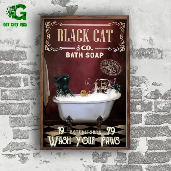 Black Cat Poster Cat Lover Black Cat Red Supine Bath Soap Wash Your Paws Wall Art Home Decor Poster Print