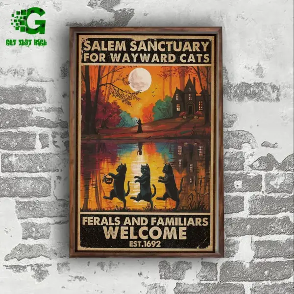 Black Cat Poster Cat Lover Black Cat Retro Salem Sanctuary For Wayward Wall Art Home Decor Poster Print
