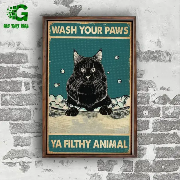 Black Cat Poster Cat Lover Black Cat Shower Wash Your Paws Wall Art Home Decor Poster Print