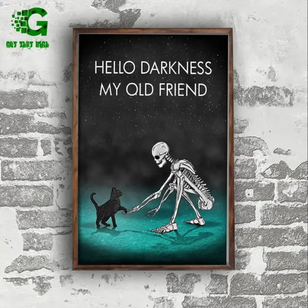 Black Cat Poster Cat Lover Black Cat Skeleton Hello Darkness My Old Friend Wall Art Home Decor Poster Print
