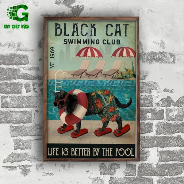 Black Cat Poster Cat Lover Black Cat Swimming Club Life Is Better By The Pool Wall Art Home Decor Poster Print