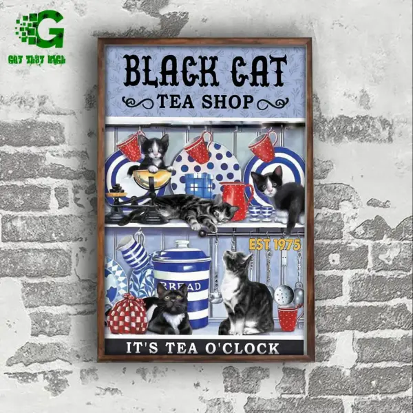 Black Cat Poster Cat Lover Black Cat Tea Shop It S Tea O Clock Wall Art Home Decor Poster Print