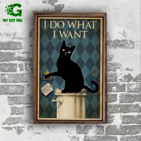 Black Cat Poster Cat Lover Black Cat Toilet I Do What I Want Wall Art Home Decor Poster Print