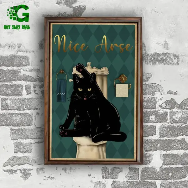 Black Cat Poster Cat Lover Black Cat Toilet Nice Arse Wall Art Home Decor Poster Print