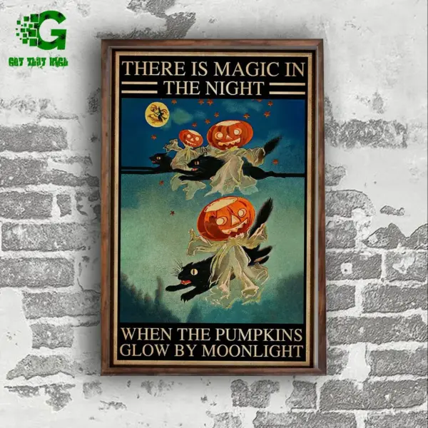 Black Cat Poster Cat Lover Black Cat Witch Pumpkins Glow By Moonlight Wall Art Home Decor Poster Print
