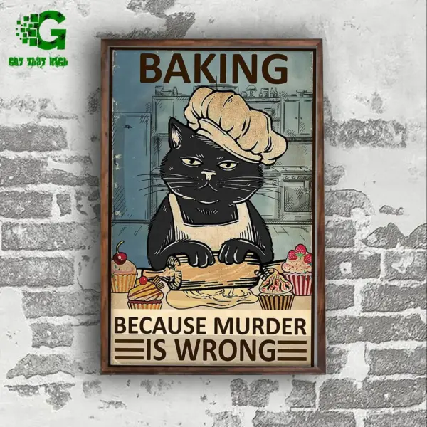 Black Cat Poster Cat Lover Black Cta Retro Baking Because Murder Is Wrong Wall Art Home Decor Poster Print