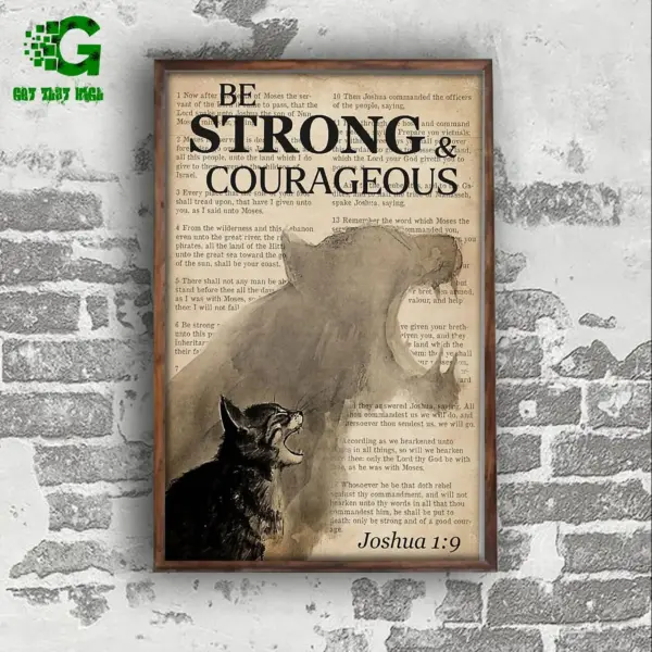 Black Cat Poster Cat Lover Cat Bible Be Strong And Courageous Wall Art Home Decor Poster Print
