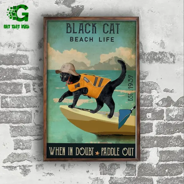 Black Cat Poster Cat Lover Cat Canoe Kayak When In Doubt Paddle Out Wall Art Home Decor Poster Print