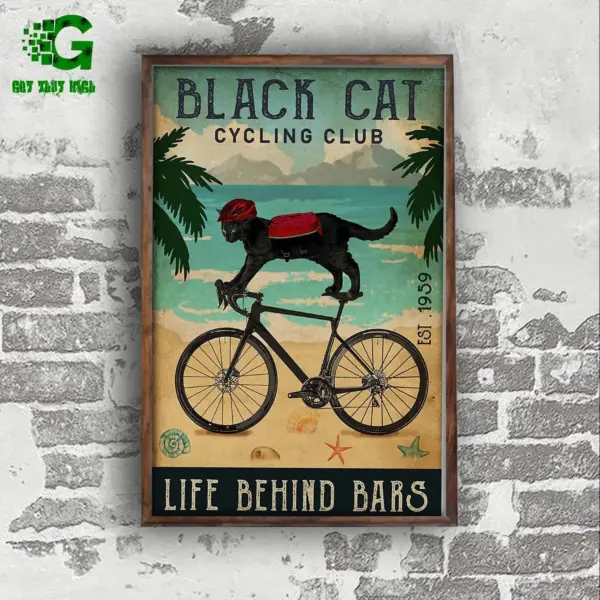 Black Cat Poster Cat Lover Cat Cycling Life Behind Bars Wall Art Home Decor Poster Print