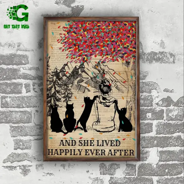 Black Cat Poster Cat Lover Cat Dictionary Girl She Lived Happily Ever After Wall Art Home Decor Poster Print