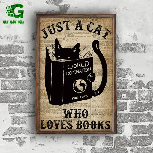Black Cat Poster Cat Lover Cat Dictionary Just A Cat Who Loves Books Wall Art Home Decor Poster Print